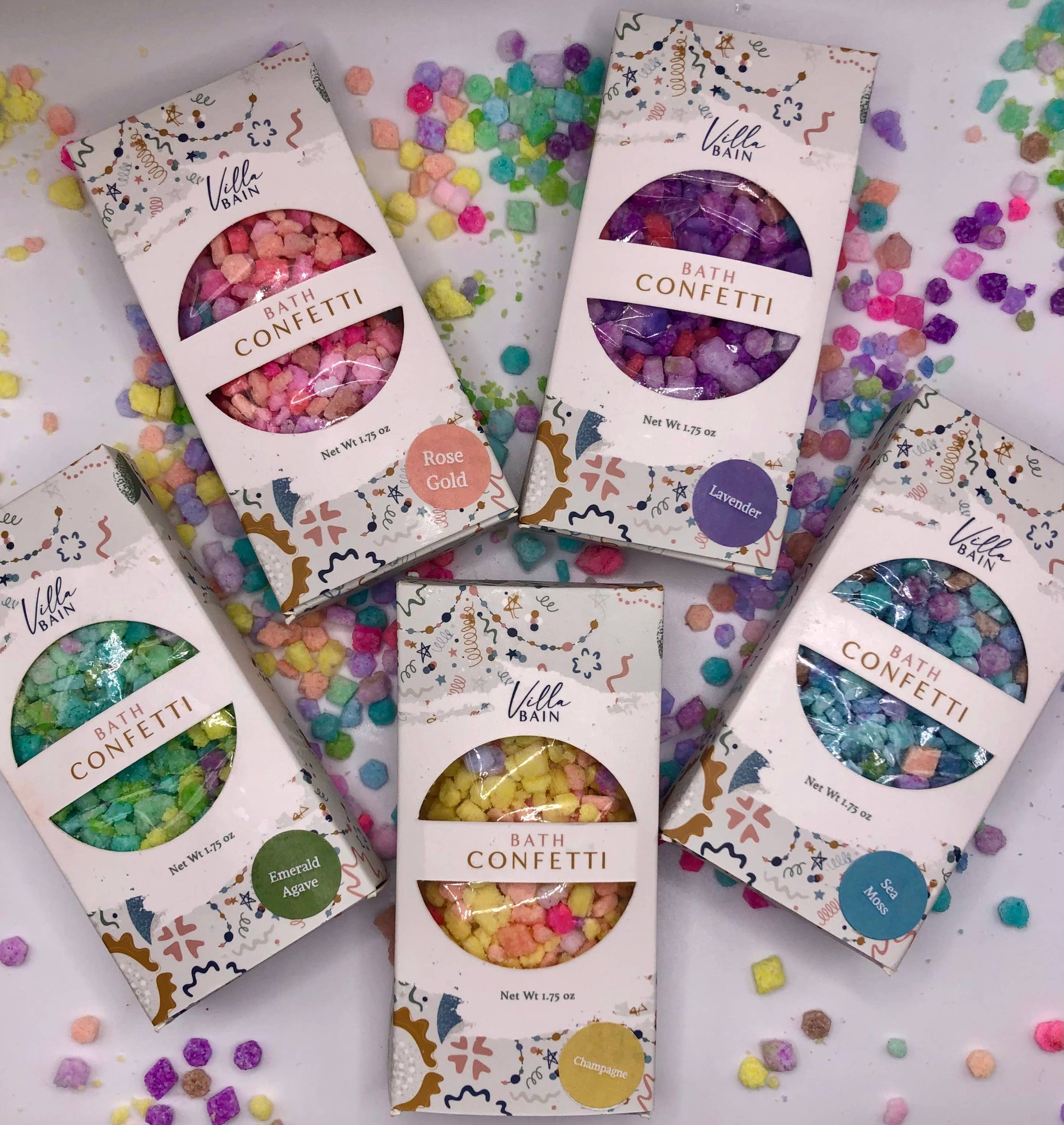 Throw some confetti around and celebrate with this fun bathtime treat. A perfect sized box full of fun colored bath fizz is waiting for you. Try one of our 5 colors/ fragrances or mix and match! Make bath time fun again. Each comes packaged in an individual box perfect for gifting or to display. Perfect gift for celebrating an Engagement, Promotion, Graduation, Anniversary or any other Happy Time! Perfect addition for Gift Boxes or Care Packages.