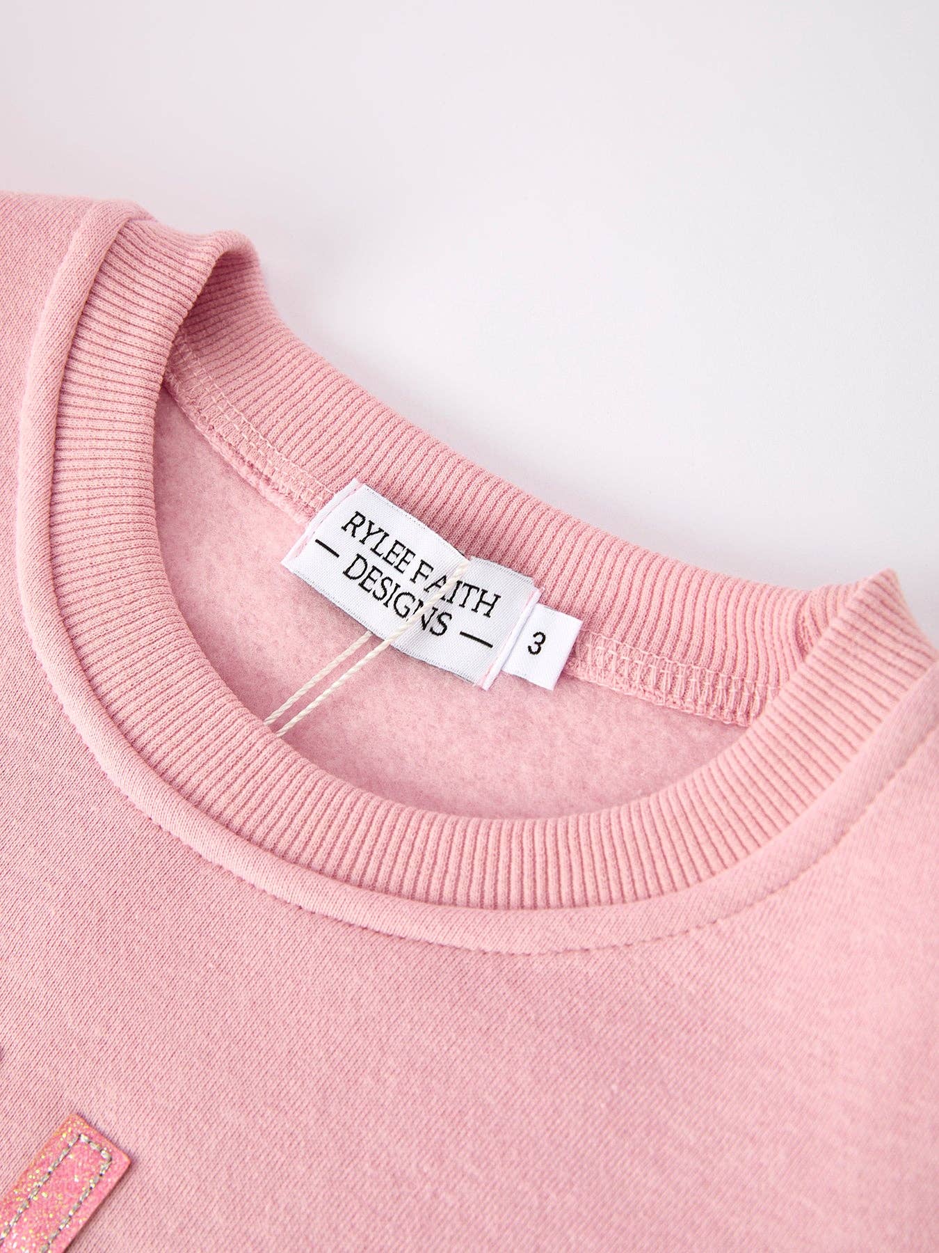 Girls Christmas Outfit – Pink “Santa Baby” Ruffle Sweatshirt & Velvet Bell-Bottom Pants Set