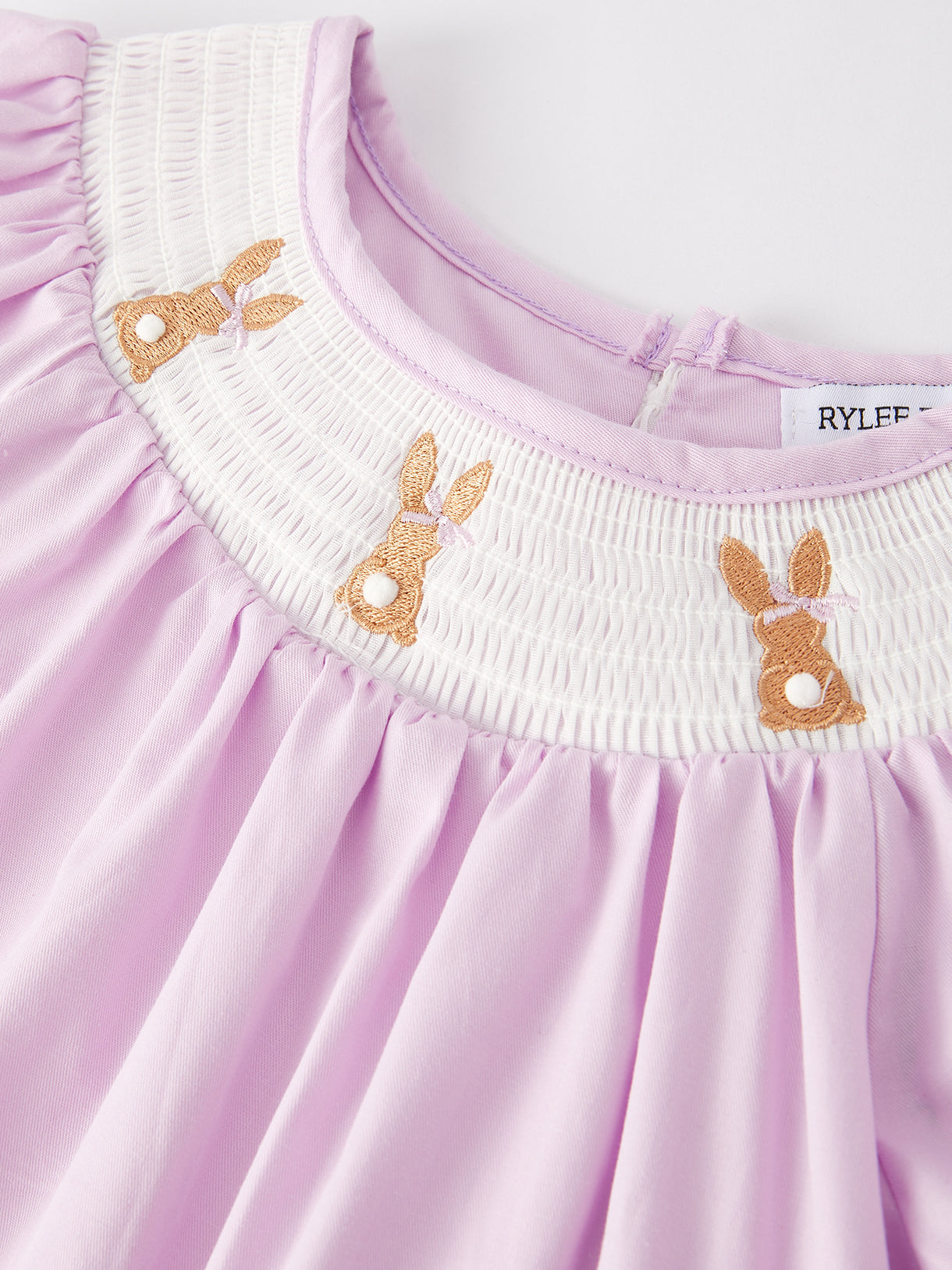 Girls Easter Bunny Smocking Embroidered Lace Cuff Purple Dress