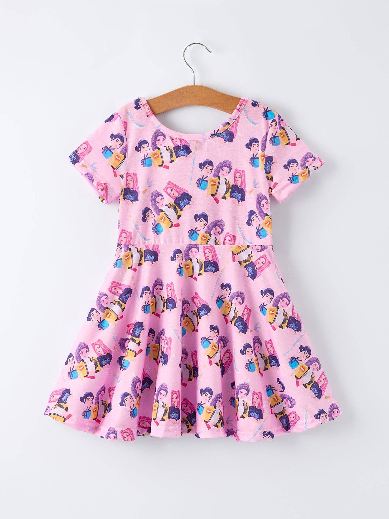 Introduce your little one to playful style with this charming Pink Characters Print Short Sleeve Girls Dress. Featuring vibrant character designs on a soft pink background, this dress combines comfort with eye-catching appeal that kids adore. The short sleeves keep her cool during warm weather, while the relaxed fit allows easy movement for active play. Perfect for everyday wear, casual outings, or themed occasions, this dress brings personality and joy to her wardrobe. Quality construction ensures durability through countless adventures and washes.