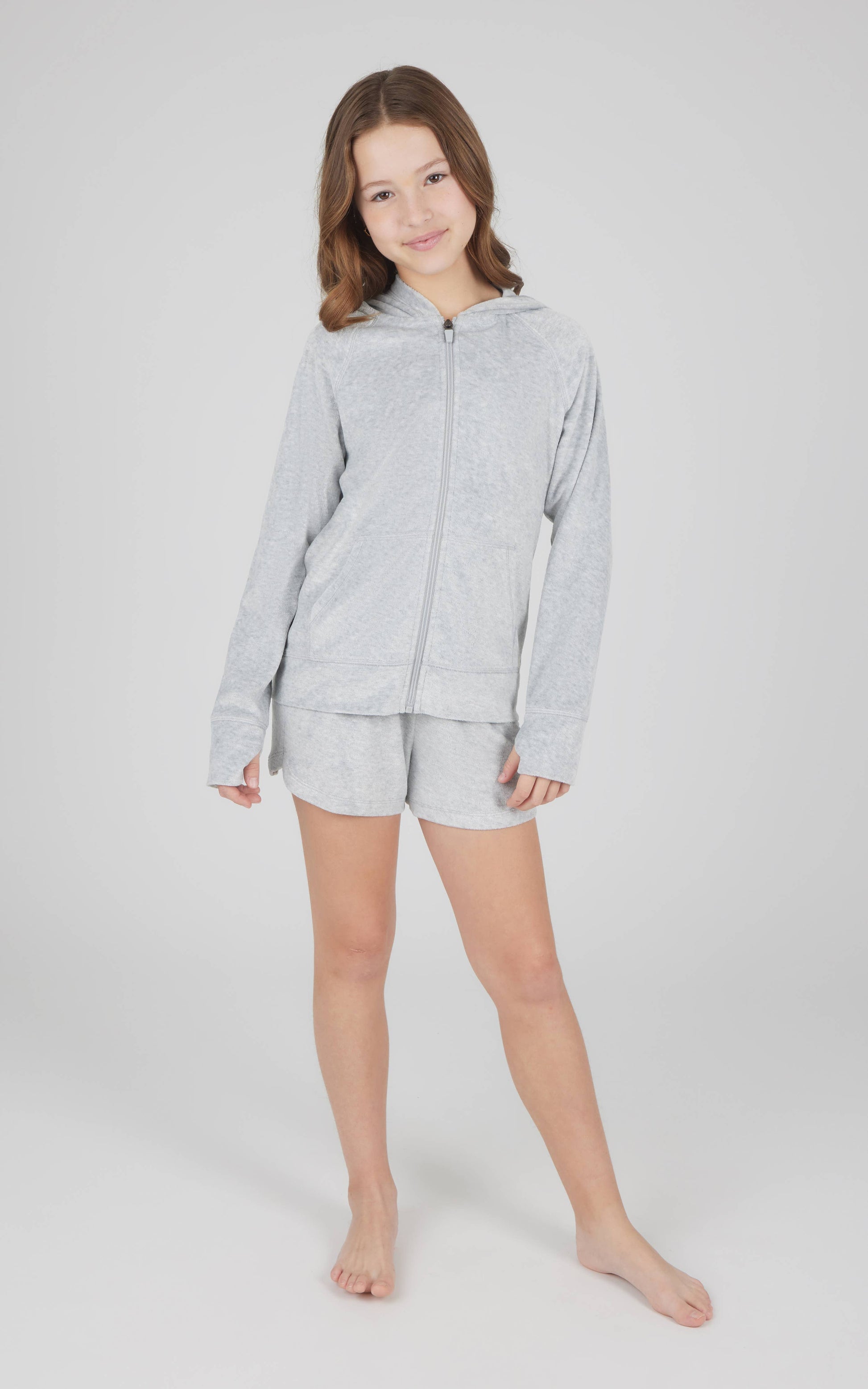 Girls Velour Hoodie Jacket and Short Set- This is 2 PCS SET - Great matching set for School and any outdoor activities - Inner short attached - Machine Wash Cold - Lay flat to dry, no heat