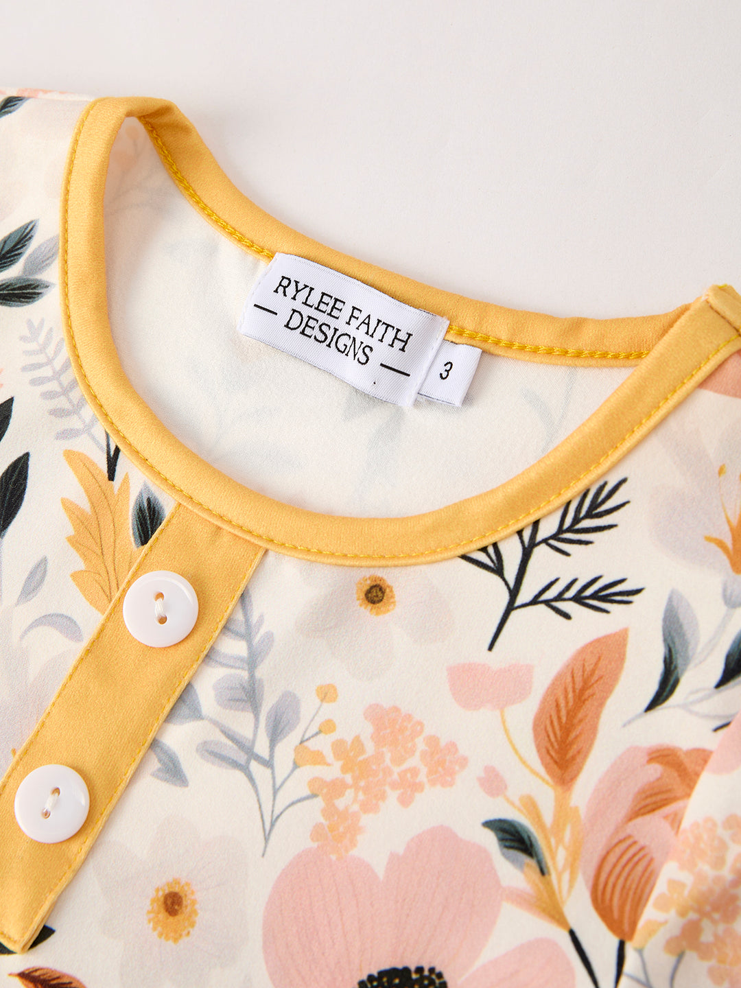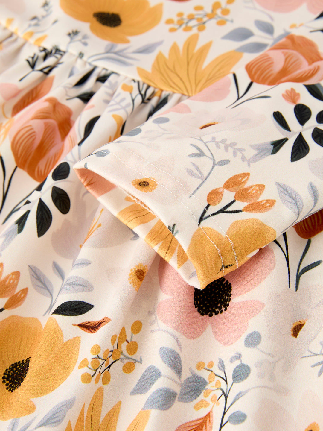 Fall/Winter Floral Long Sleeve Ruffled Girls Dress